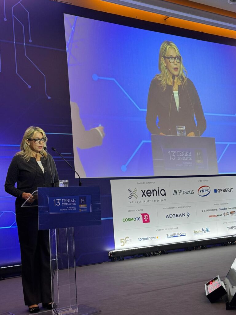 Στη συνέχεια, η κα Καραμανλή απηύθυνε χαιρετισμό στη 13η Γενική Συνέλευση του Ξενοδοχειακού Επιμελητηρίου Ελλάδος, μεταφέροντας τις ευχές της Υπουργού Τουρισμού κυρίας Όλγας Κεφαλογιάννη και συγχαίροντας τα νέα μέλη του Διοικητικού Συμβουλίου καθώς και τον επανεκλεγέντα Πρόεδρο, κύριο Αλέξανδρο Βασιλικό.