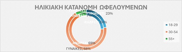 Η πλειονότητα των ωφελουμένων ανήκει στην ηλικιακή ομάδα 30–54 ετών, ενώ σημαντική είναι και η συμμετοχή νέων 18–29 ετών, στοιχείο κρίσιμο για τη βιωσιμότητα του κλάδου.