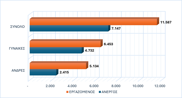 - 7.147 ωφελούμενοι ήταν άνεργοι (38,2%), εκ των οποίων οι 4.732 ήταν γυναίκες