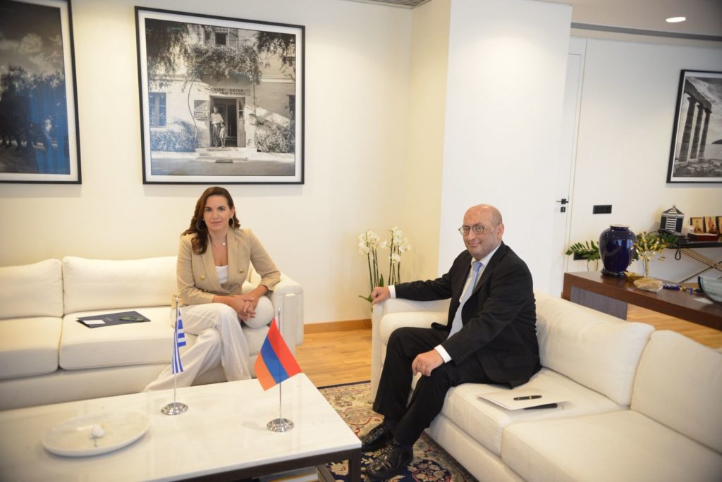 Την Υπουργό Τουρισμού κα Όλγα Κεφαλογιάννη επισκέφθηκε σήμερα ο Πρέσβης της Αρμενίας στην Ελλάδα, κ. Tigran Mkrtchyan, και συζήτησαν τις προοπτικές περαιτέρω ανάπτυξης της συνεργασίας των δύο χωρών στον τομέα του τουρισμού.