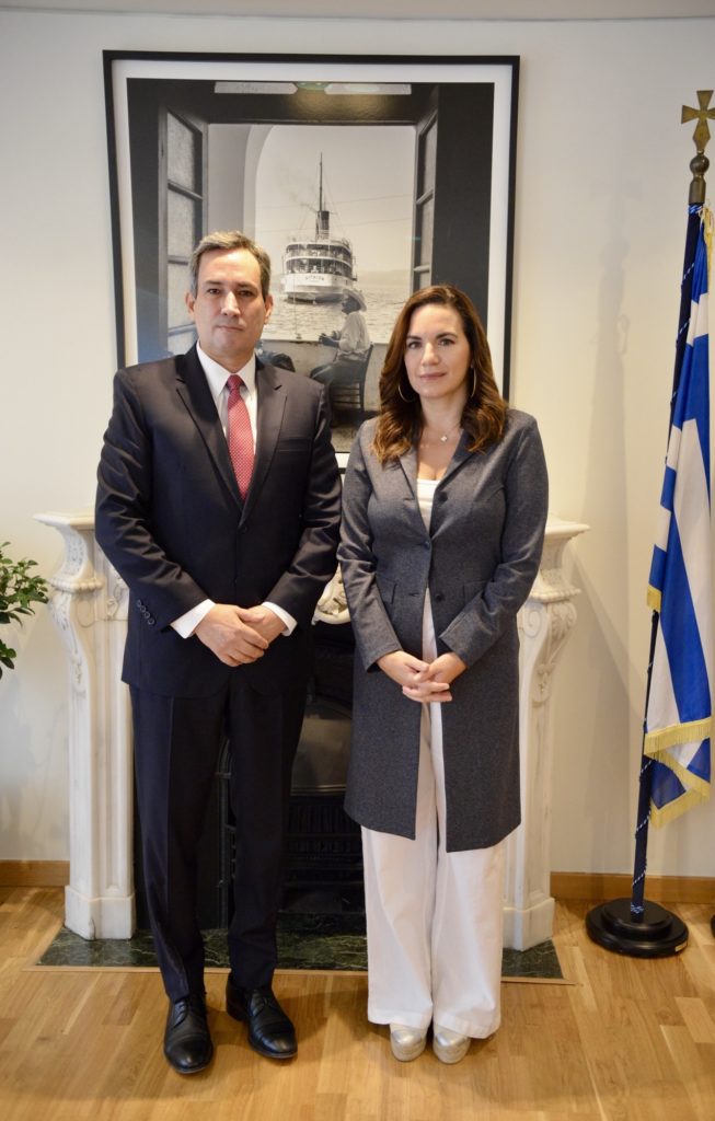 Την Υπουργό Τουρισμού, κυρία Όλγα Κεφαλογιάννη, επισκέφθηκε ο Πρέσβης του Περού στην Ελλάδα, κ. Αρτούρο Αρσινιέγα, με στόχο την ενίσχυση της διμερούς συνεργασίας στον τομέα του τουρισμού. Η συνάντηση εστιάστηκε σε κοινές δράσεις που προάγουν την αειφόρο ανάπτυξη και την προβολή του φυσικού και πολιτιστικού πλούτου των δύο χωρών.